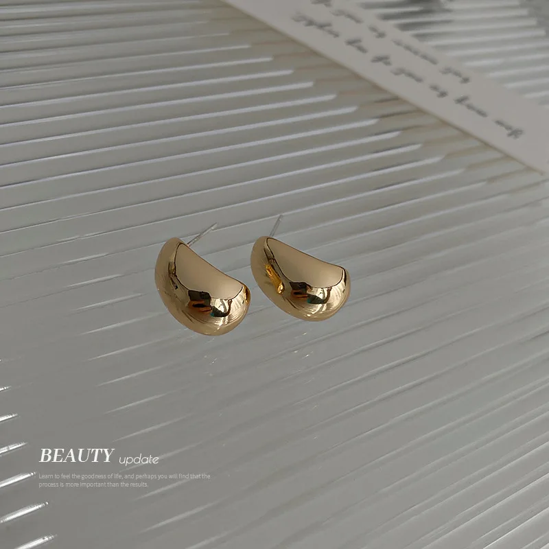 aliexpress , ali , shop , ali shop , online , store , online shop , online store , buy , sell , 925 Silver Needle Geometric C-shaped Bean Earrings Metal Cool Style Earrings Simple and High End Earrings for Women