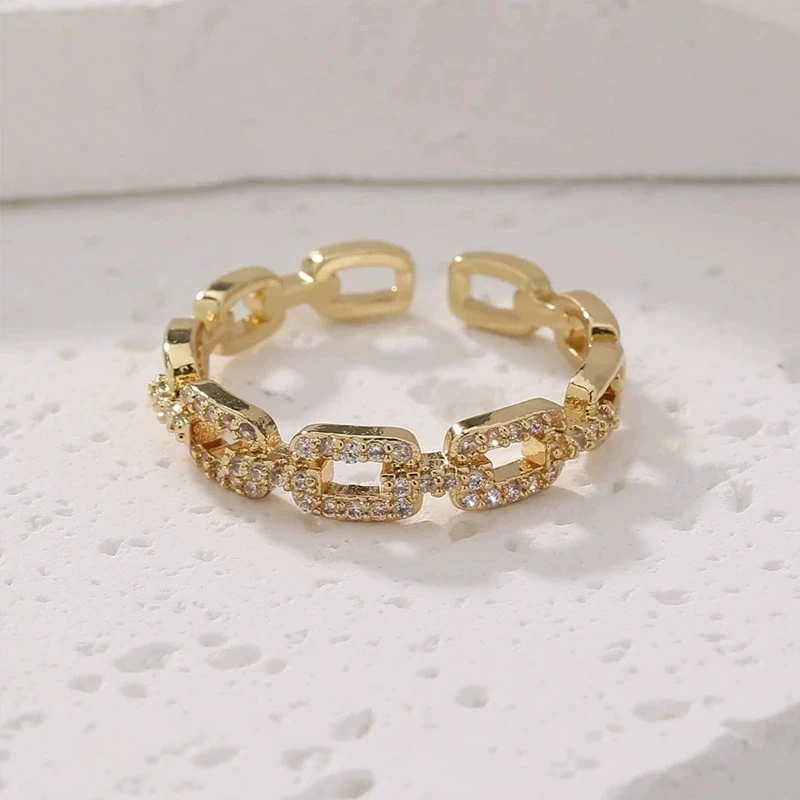Fashion Zircon Twist Chain Open Rings For Women Gold Silver Color Elegant Finger Ring Female Korean Wedding Jewelry Gift