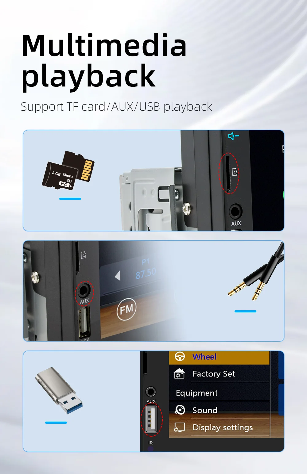 BQCC 7 Inch 1Din 2Din Car Radio Carplay Android Auto Multimedia Player HD Touch Screen FM AUX BT MirrorLink Universal Car Audio