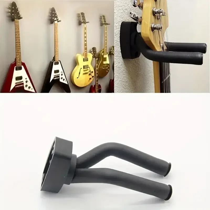 1pc Black Dual Guitar Wall Mount – Space-Saving Hook for Acoustic & Electric, Easy Install Home Studio