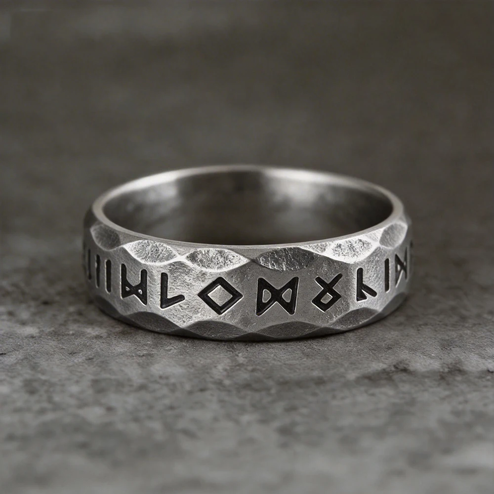 SUNFLOWERZHU Wholesale Men'S Stainless-Steel Rings Punk Viking Rune Men Rings Bevel Vintage Rings Silver Ring Jewelry For Man