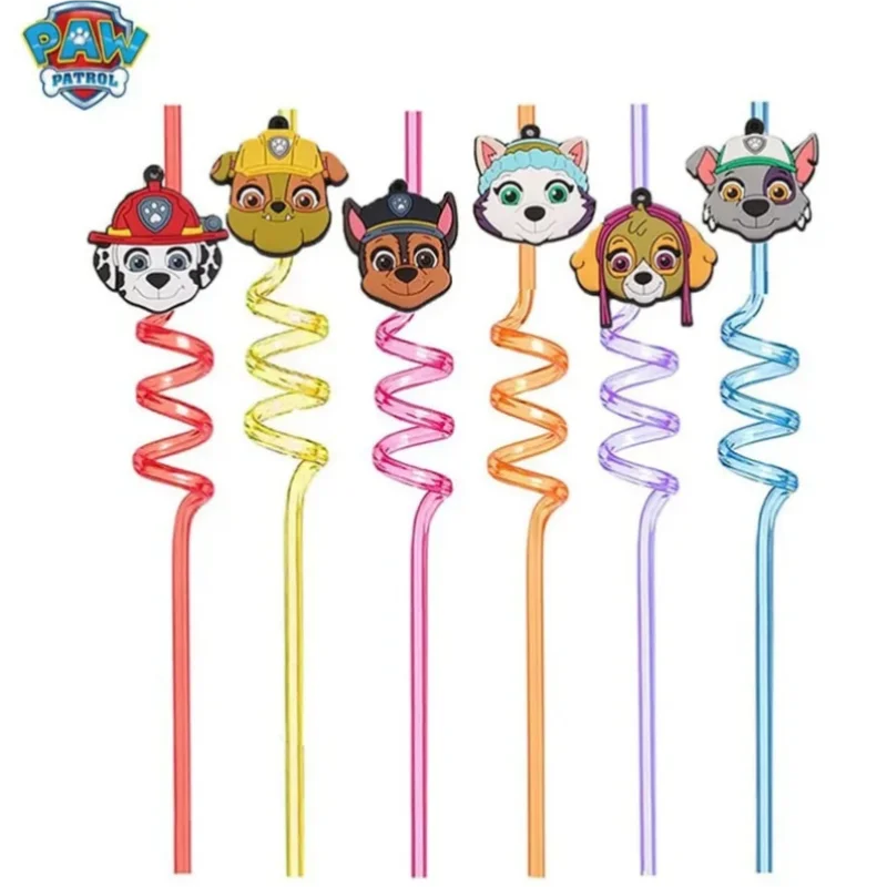 Paw Patrol 6Pcs Straw Plastique Beverage Straw cartoon Birthday Party Decoration Anime Figure Drinking Straws Kid Toy Boy Gift