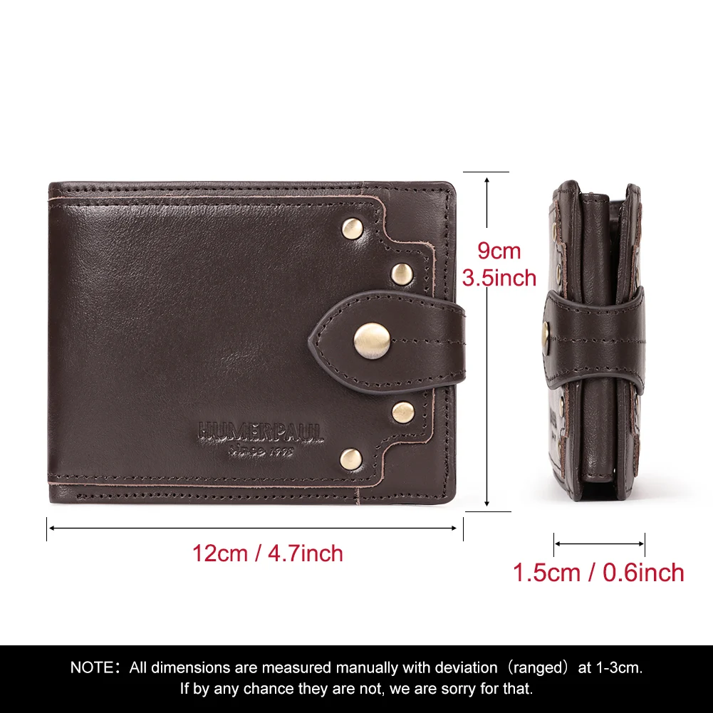 100% Genuine Leather Short Wallet for Men RFID Multi Card Holder with Coin Purse Fashion Trifold Male Money Clip Handbag