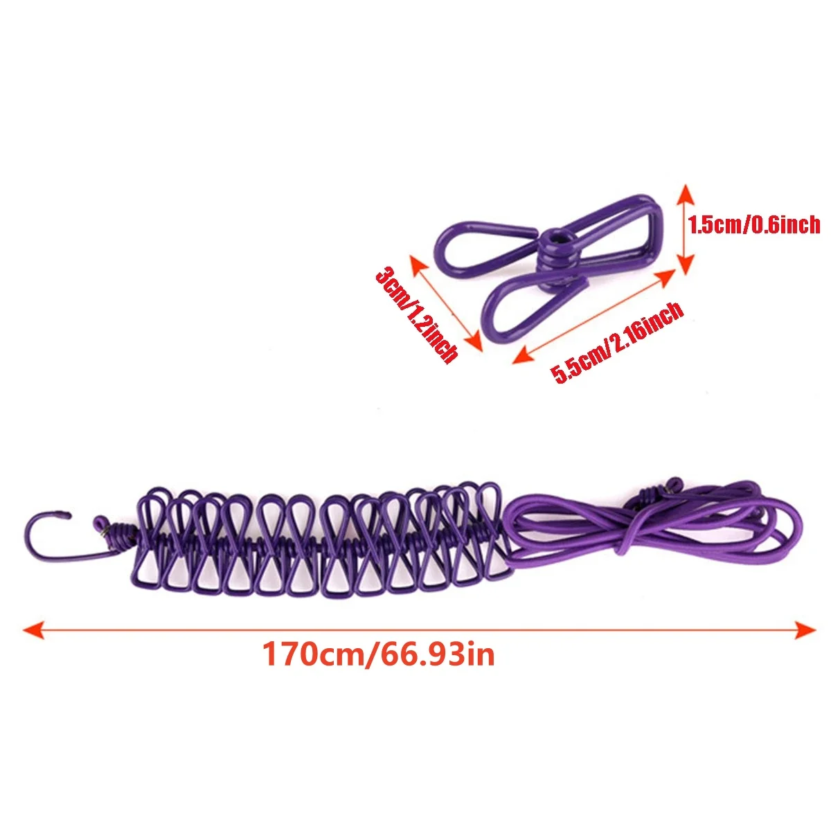 1pc Portable Clothesline With 12 Clips Polychrome Outdoor No Punching Required Travel Camp Retractable Clothes Rope Drying Rack