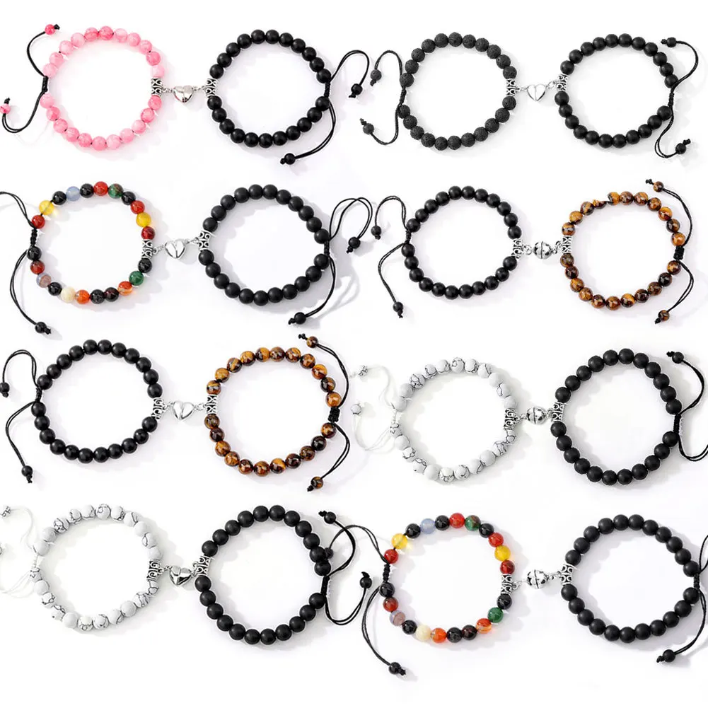 Magnet Couple Bracelets for Woman Men Romantic Heart Matching Lovers Natural Stone Beads Yoga Bracelet Valentine Gift Jewelry