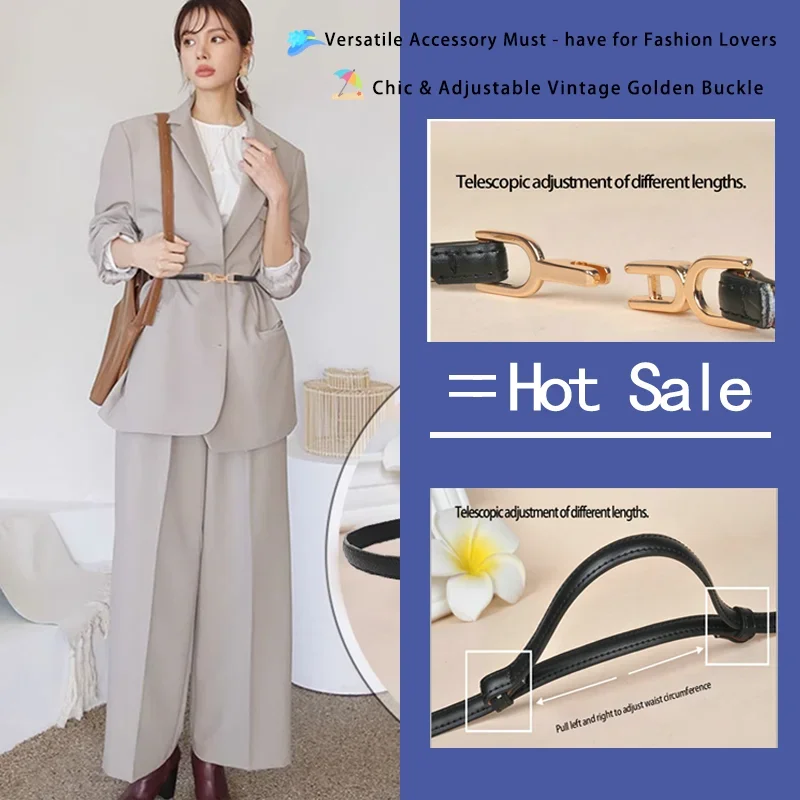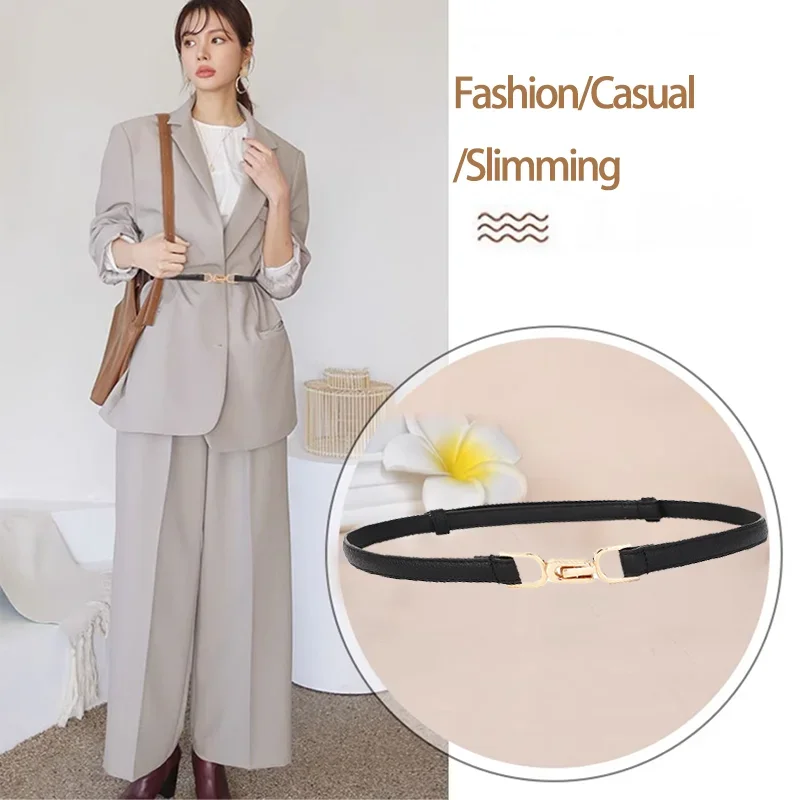 【2025 New】Adjustable Women's Skinny Dress Belt-Vintage Golden Buckle Fashionable 1pcs Skinny PU Brand Design Faux Leather Belt