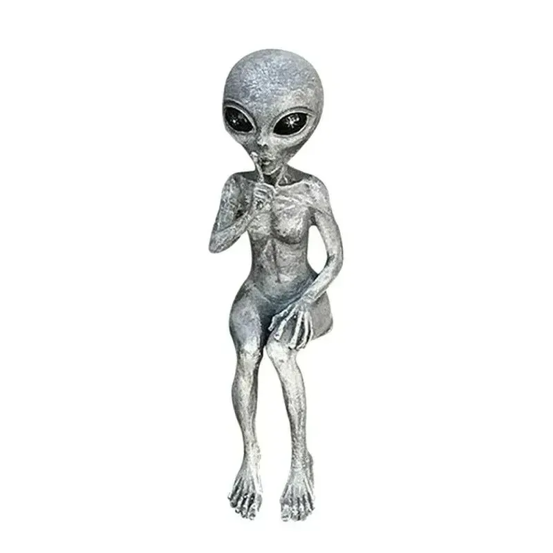 Funny Resin Alien Statue Outdoor Garden Decoration UFO Dwarf Sculpture Desktop Home Decor for Halloween Christmas Ornaments