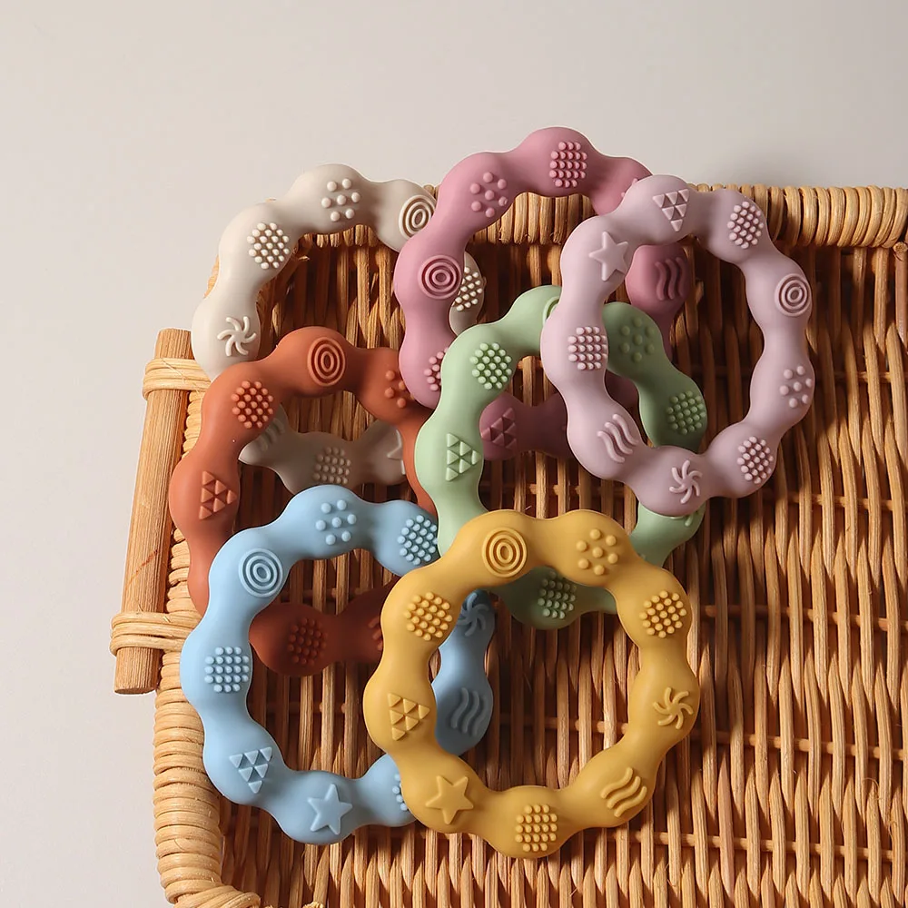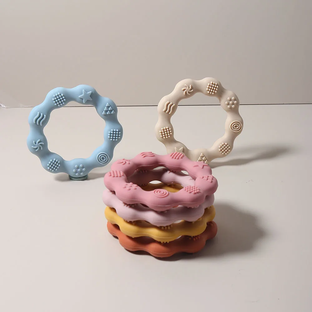 baby teether cartoon ring infant teething toy cute sensory soothing gum soft bpa free chew toy