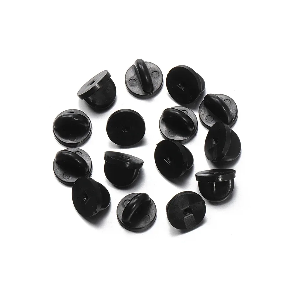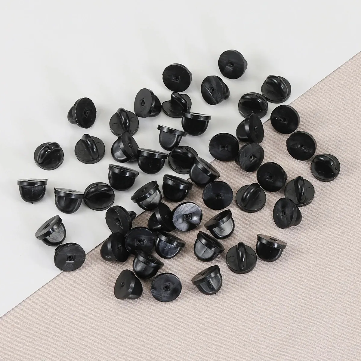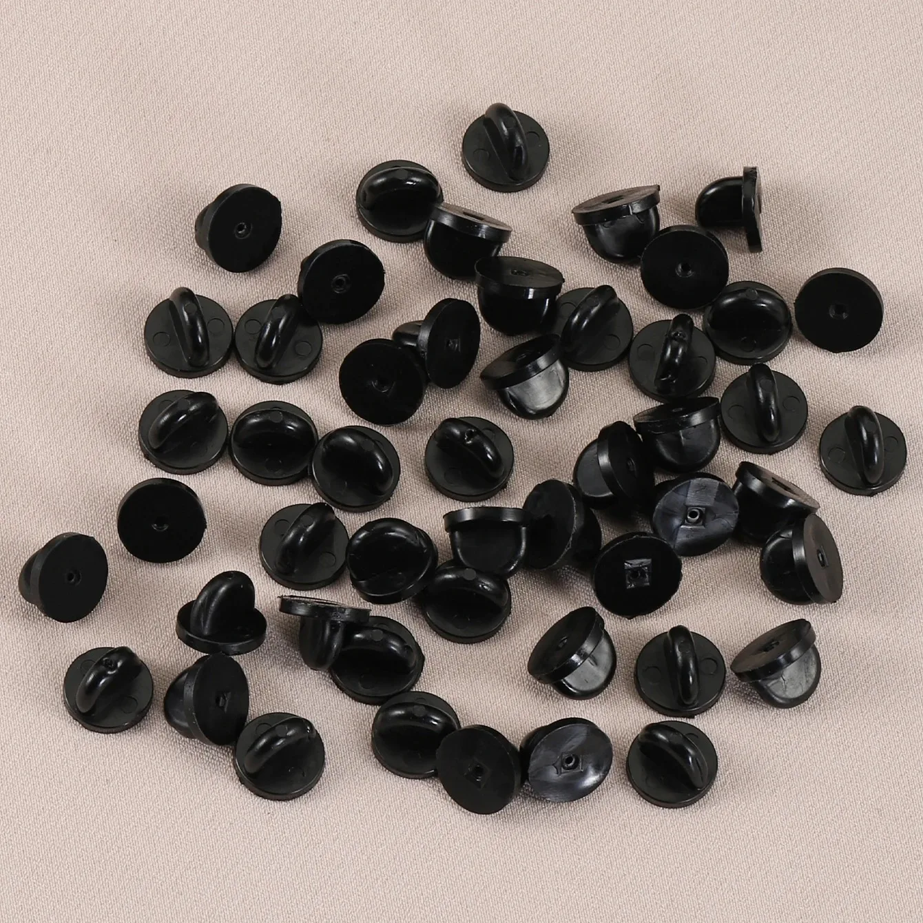 Black Rubber Brooch Pin Back Squeeze Badge Holders with Butterfly Clasp Clutch for Craft And DIY Projects 20-50pcs