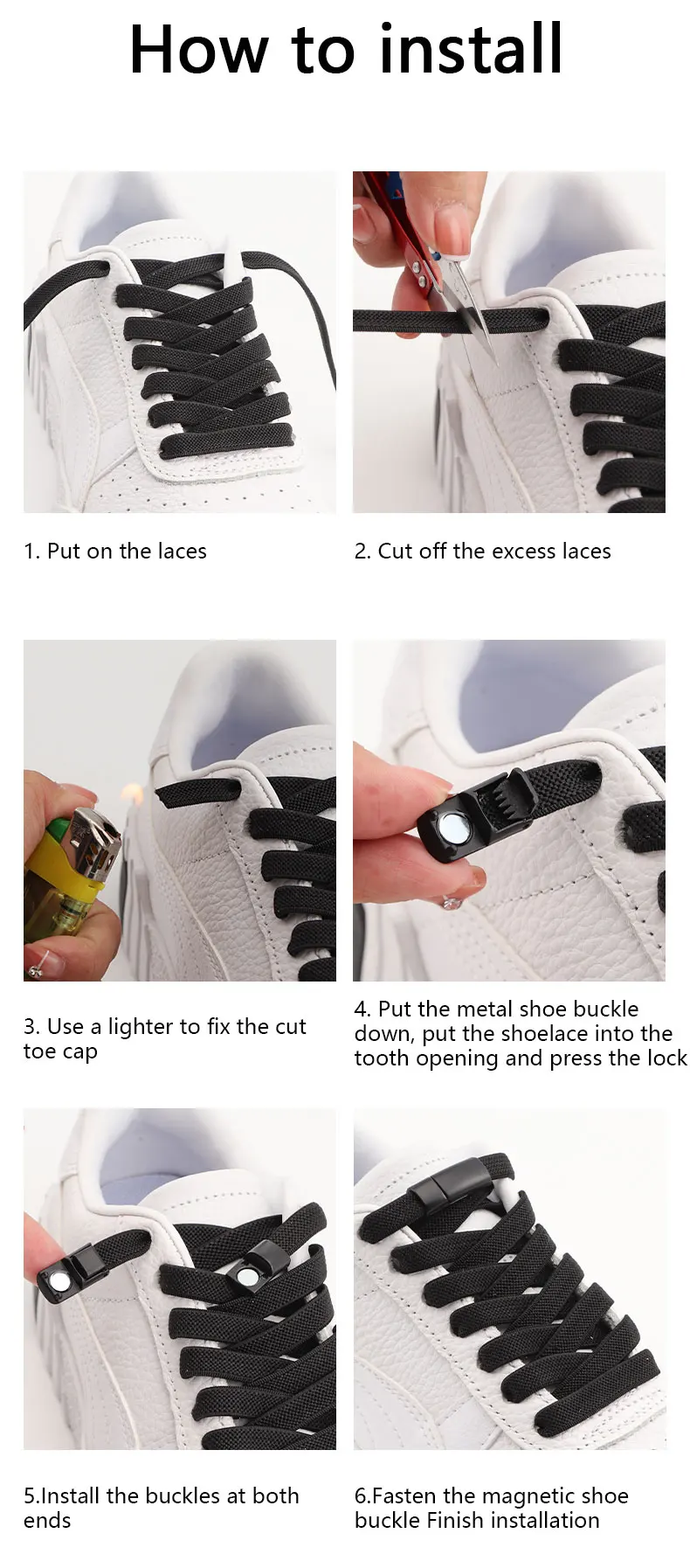 No Tie Shoelaces Magnetic Shoe Laces Clip Flat Elastic Stretch Laces Casual Sneakers Woman Men Children Shoelace Shoes Accesorie