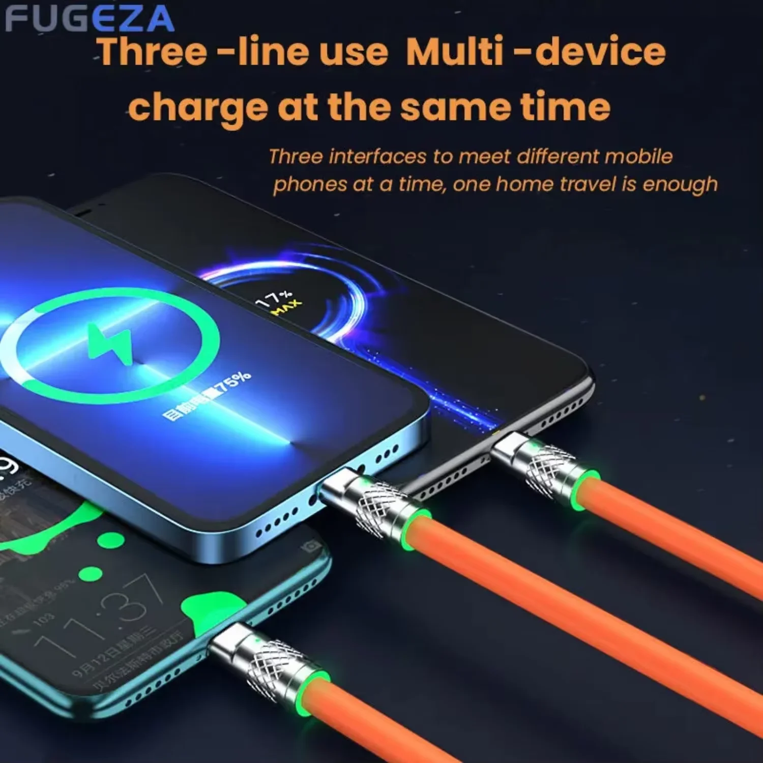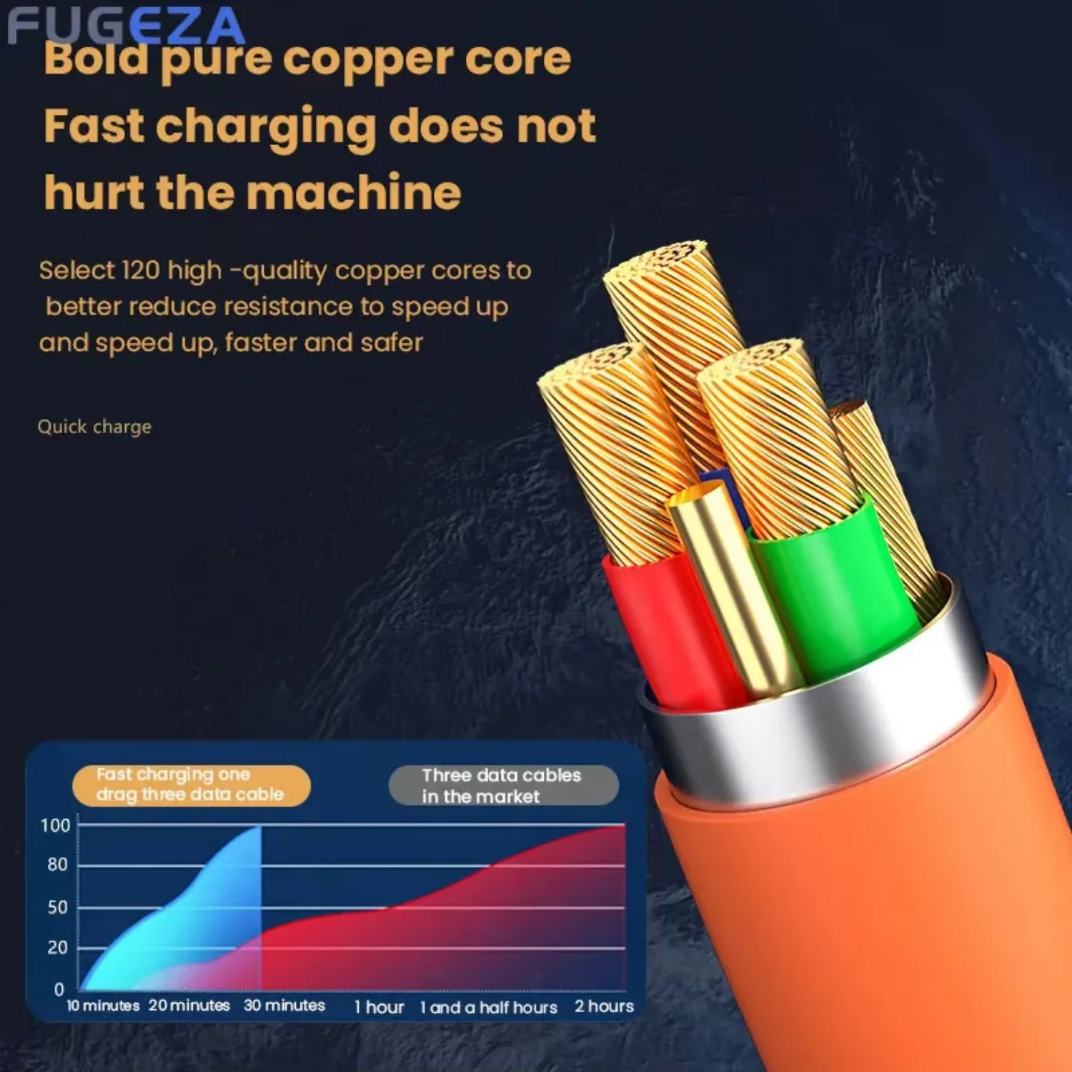 120W 6A 3 in 1 Fast Charging Type C Cable Micro USB for iPhone Charging Cable For Samsung Huawei Xiaomi Phone Charger USB Cable