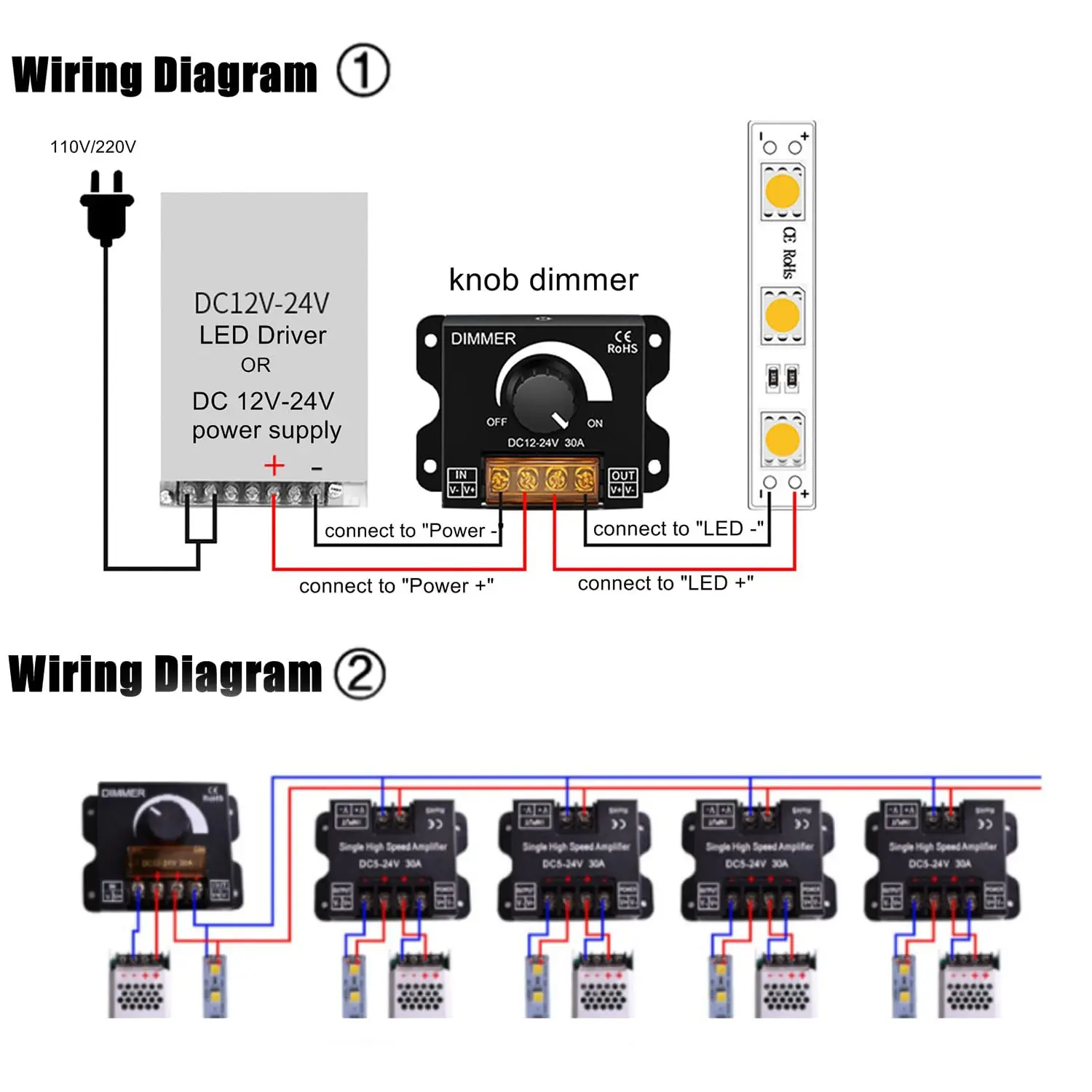 LED Dimmer Switch DC 12V 24V 8A30A Brightness Adjustable Controller for Car RVSingle Color LED Strip Light LED Dimming