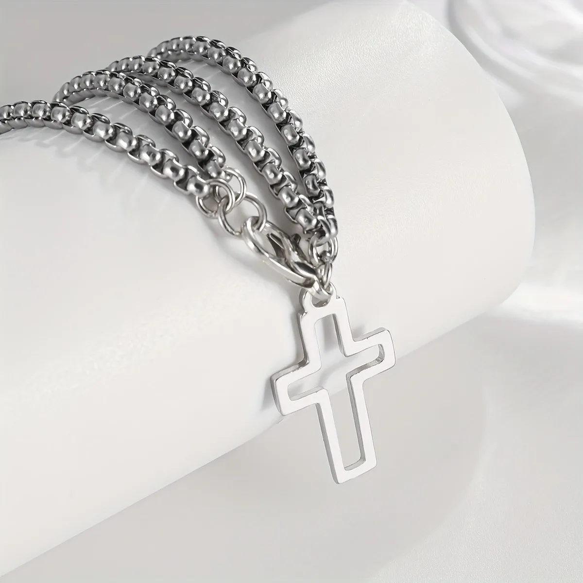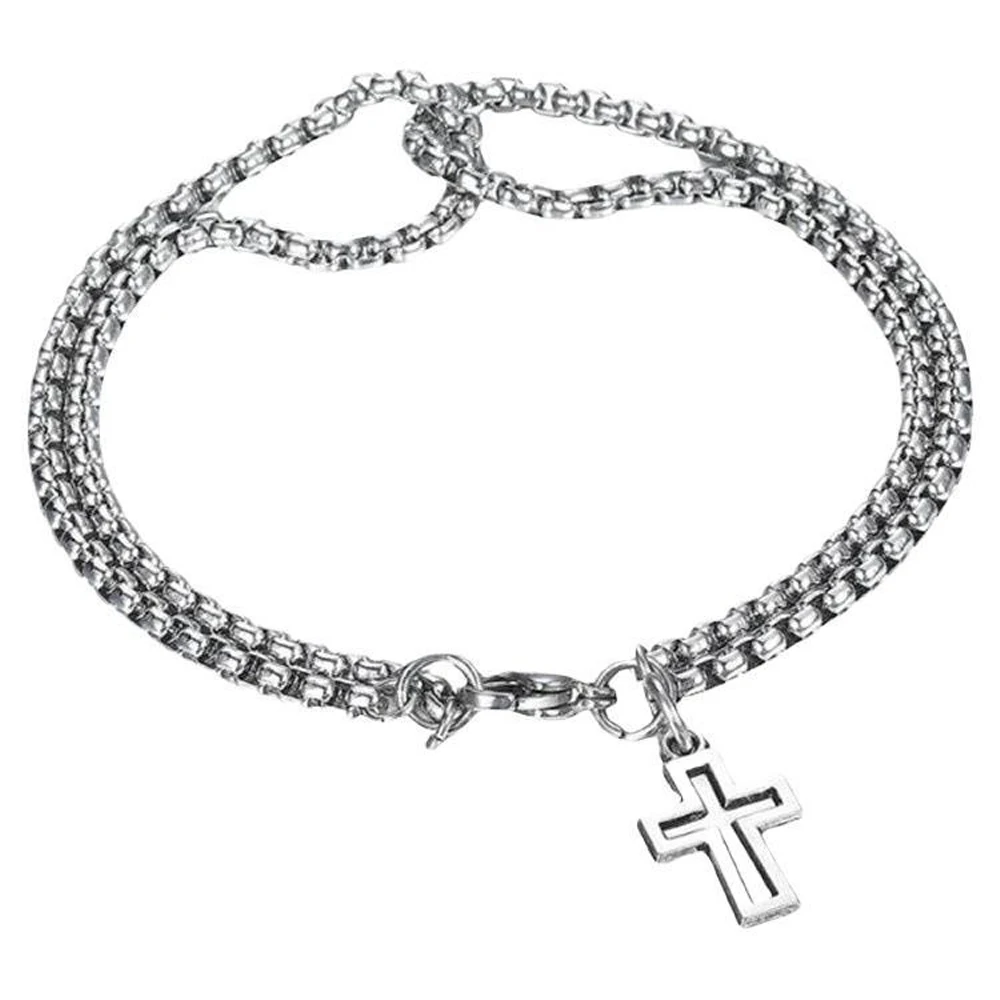 Men's Fashion Double Chain Cross Hollow Wrist Bracelets Lobster Claw Clasp Stainless Steel Bracelet Hip Hop Punk Party Jewelry