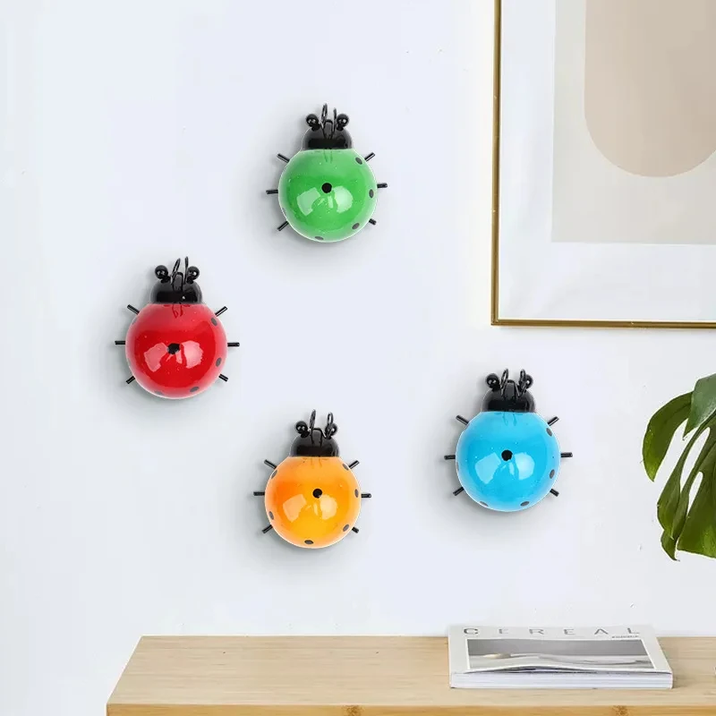 Mini Metal Ladybug Beetle Fence Hanger Wall Hanging Ornament Statue Outdoor Patio Garden Figurine Sculpture For Home Decor