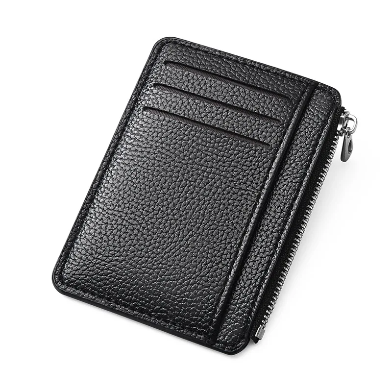 New hot selling creative zipper card bag with large capacity, ultra-thin and multi slot lychee pattern coin wallet