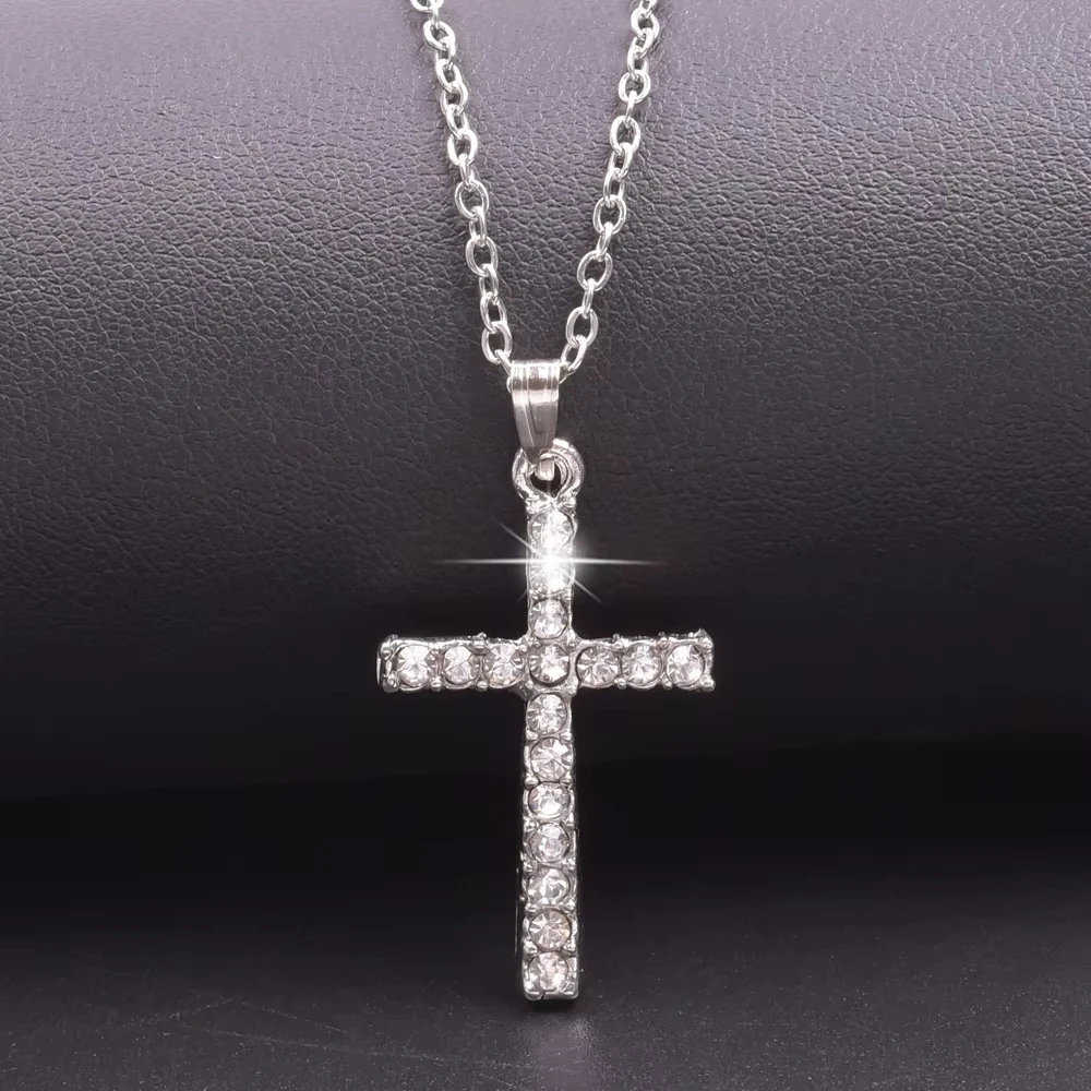 Women Necklace Jewelry Chain Fashion Cross With Rhinestone Pendant Necklace Stainless Steel Choke Ring Women Accessories New