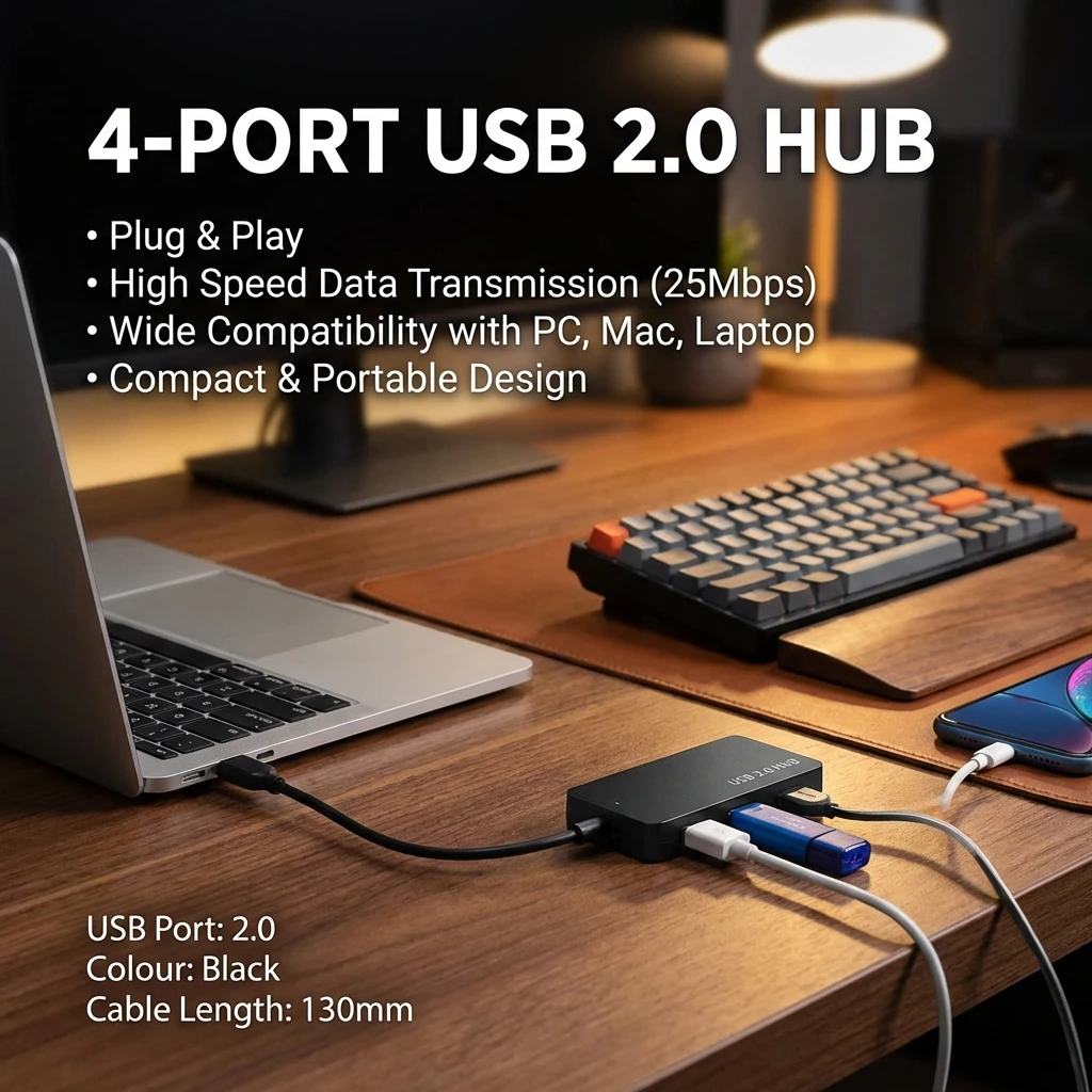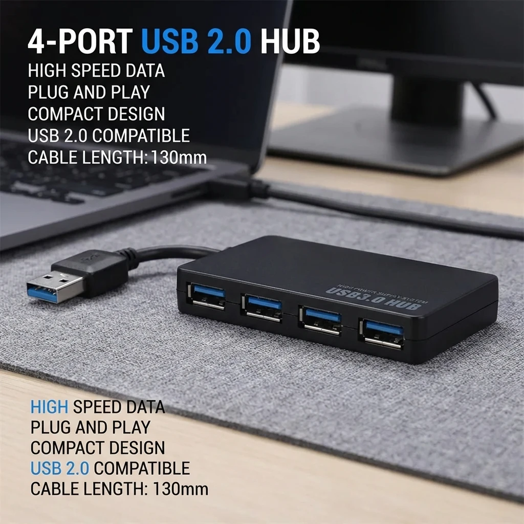 High-Speed USB 2.0 Hub 4-Port Data Cable Splitter Adapter Multi-System Plug And Play Expander for Enhanced Connectivity
