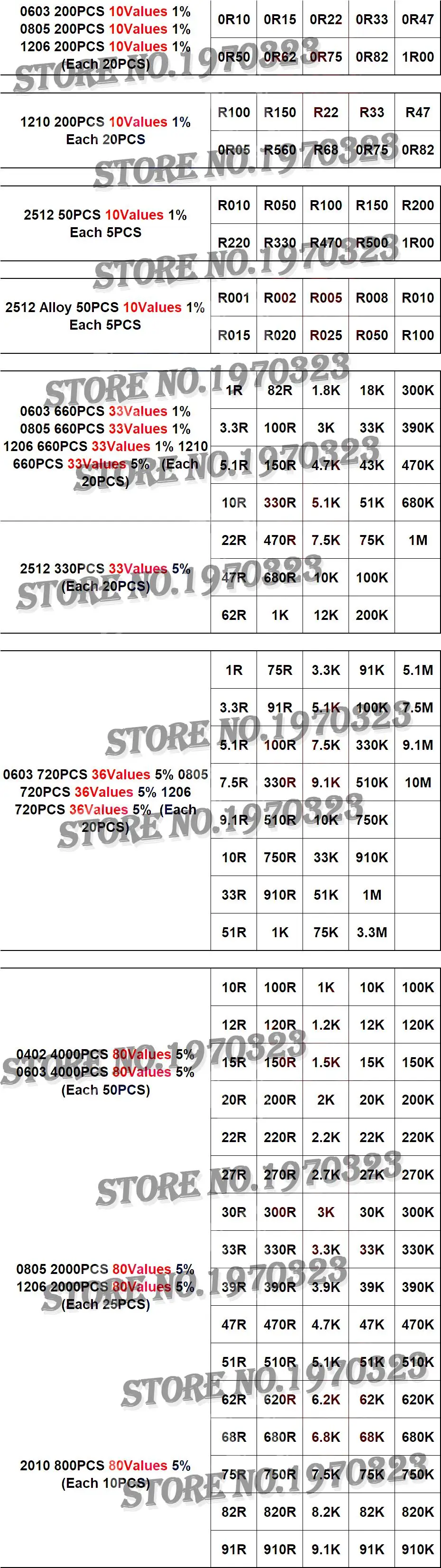 ALI shop - search results ... ... 0603 SMD Resistor Kit Assorted Kit 1ohm-1M ohm 1% 33valuesX 20PCS=660PCS Sample Kit 0805 1206 1210 0402 ::: 2021 ::: :::