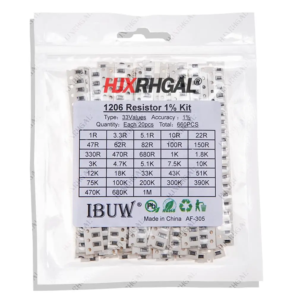 0603 SMD Resistor Kit Assorted Kit 1ohm-1M ohm 1% 33valuesX 20PCS=660PCS Sample Kit 0805 1206 1210 0402
