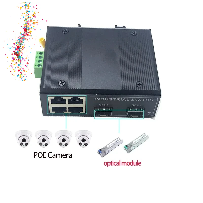 4 ports 10/100M 802.3at/af POE 48V with 2 ports10/100M SFP Ethernet industrial swith