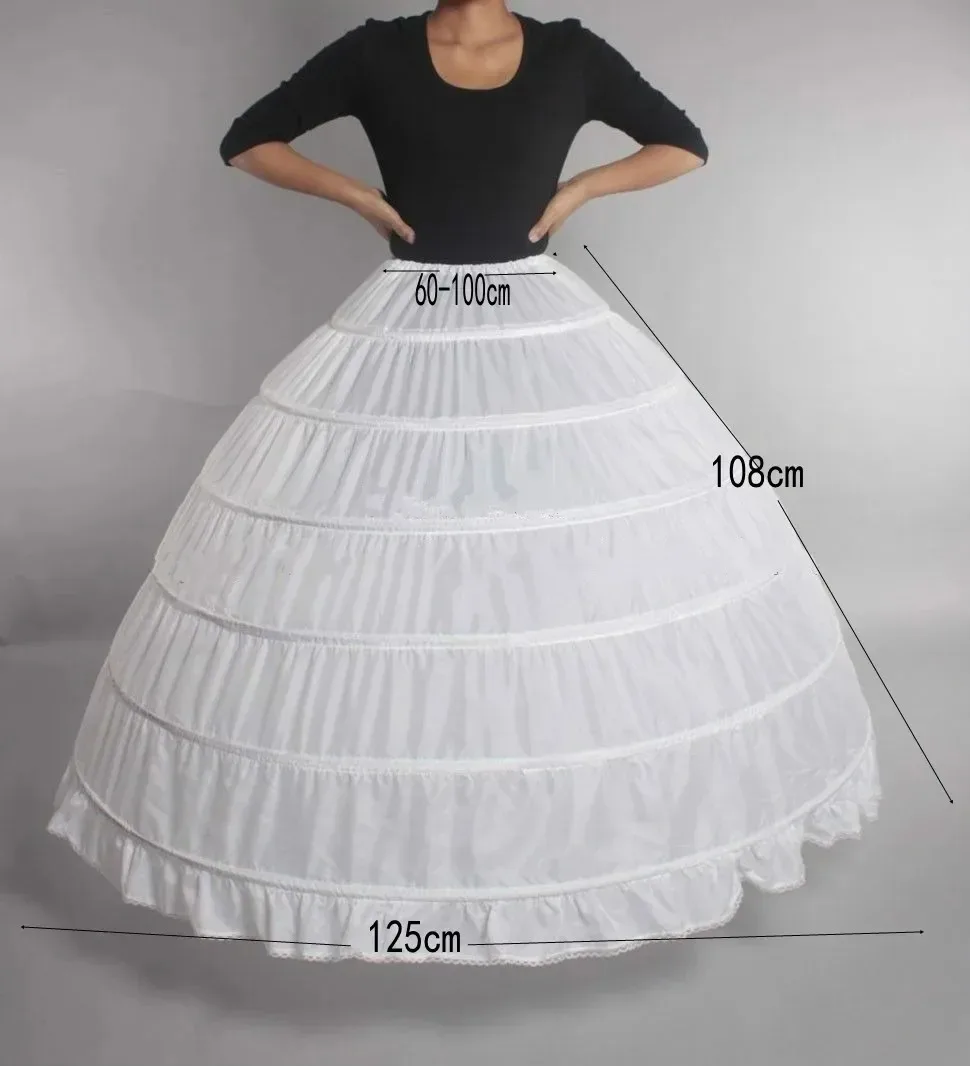 6 Rings Puffy Petticoat For Wedding Dress Ball Gown Mermaid A-Line Dresses Elastic Band Adjustable Waist Crinoline Underskirt