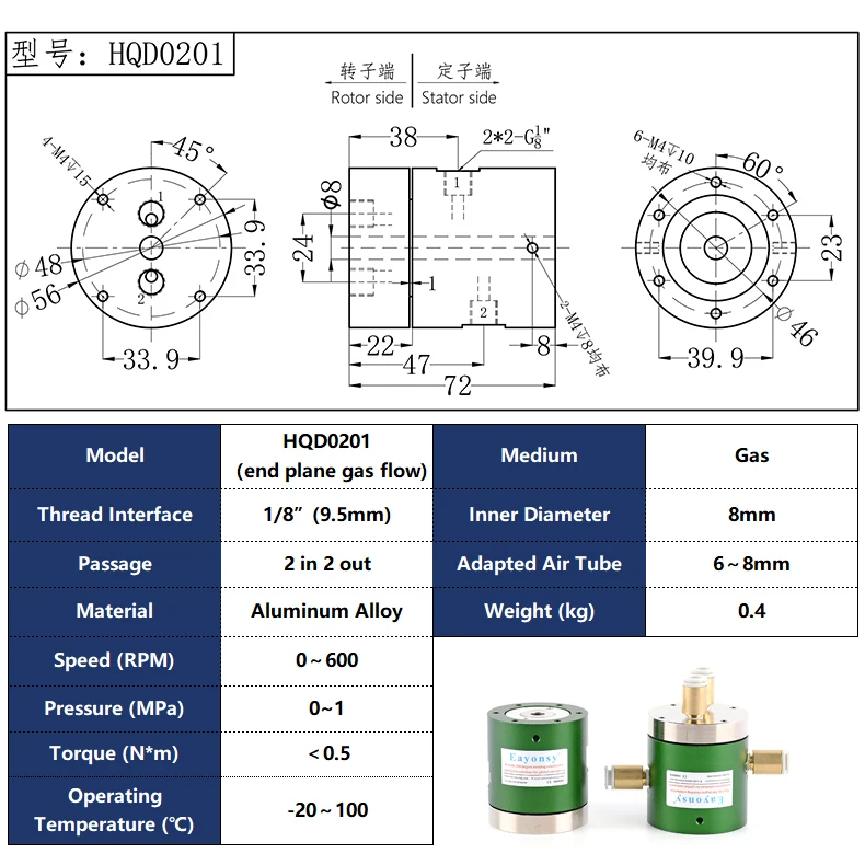 2 channel Eayonsy Rotary Joint Gas Passing Through The Bottom End Air Pneumatic Rotary Manipulator Robot Mechanical Arm