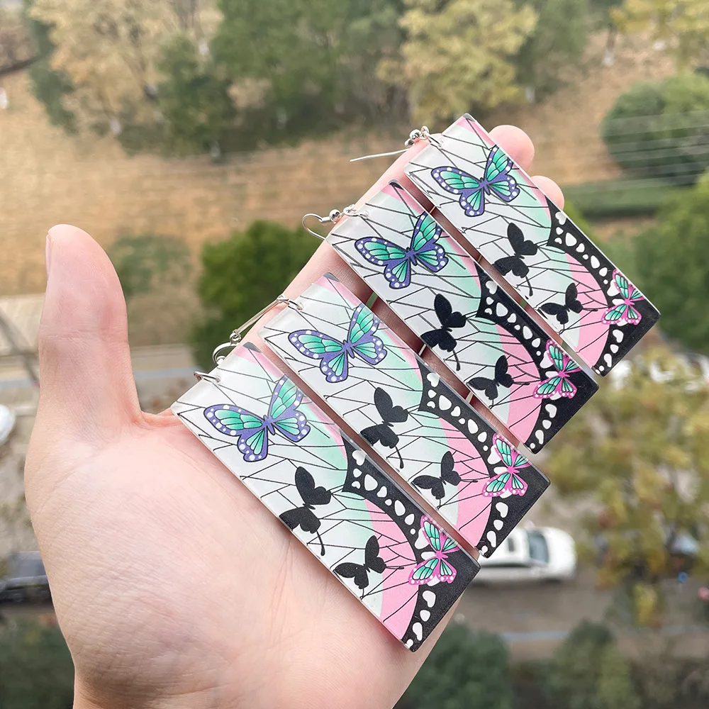 Anime Demon Slayer Earrings Tanjiro Sun And Shinobu Butterfly Pendant Earrings Cosplay Accessories Fan Jewelry Gift