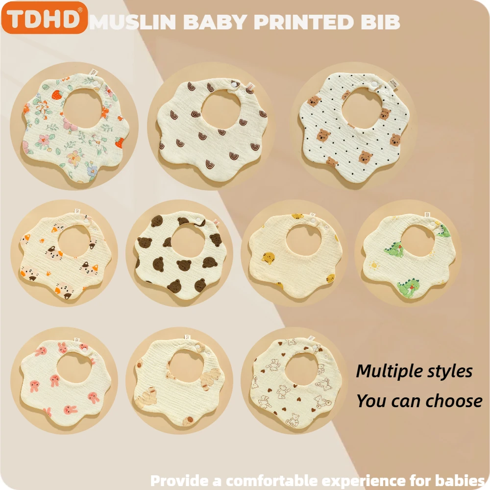 TDHD 3PCS Cotton Gauze Baby Feeding Bibs Summer Soft Petal Baby Printed Drooling Towel Newborn Toddler Baby Burp Cloth Children'