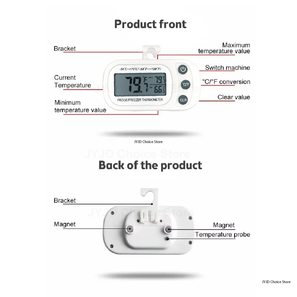Fridge Thermometer With Hook Anti-Humidity Refrigerator Freezer Electric LCD Display Digital Thermometer Temperature Monitor