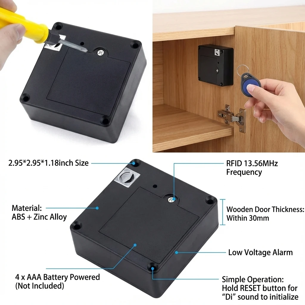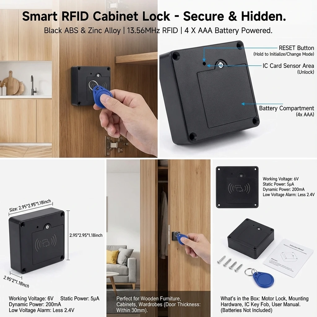Invisible Smart Drawer Lock 13.56MHz RFID IC Electronic Cabinet Lock with Intelligent Keyless Sensor Easy Install for Security