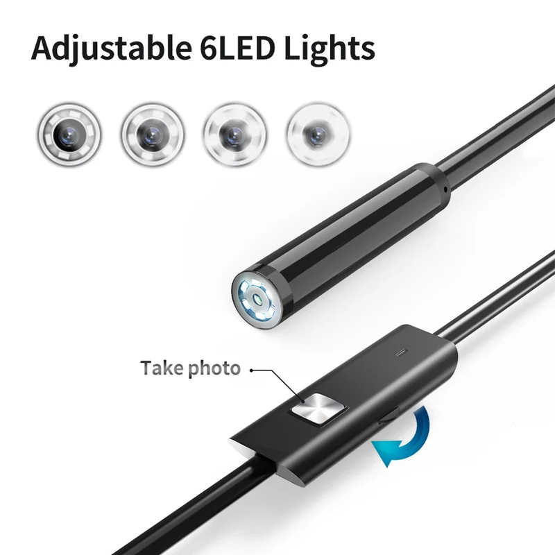 Endoscope Camera USB-C Borescope Inspection Camera with 6 LED Lights Flexible Waterproof Snake Camera for OTG Android Phone PC