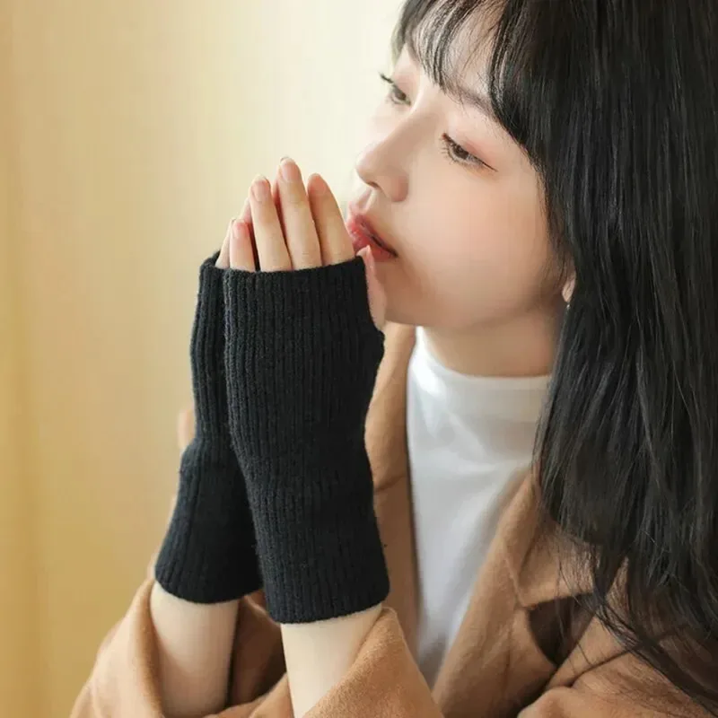 Solid Half Finger Gloves for Women Winter Soft Warm Knitting Arm Gloves Writting Warm Mittens Handschoenen Guantes