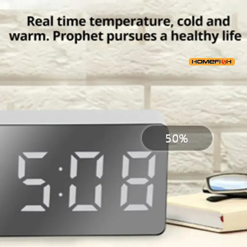 1Pc White LED Mirror Table Clock Snooze Display Time Night Light Desktop USB Alarm Clock Home Decor