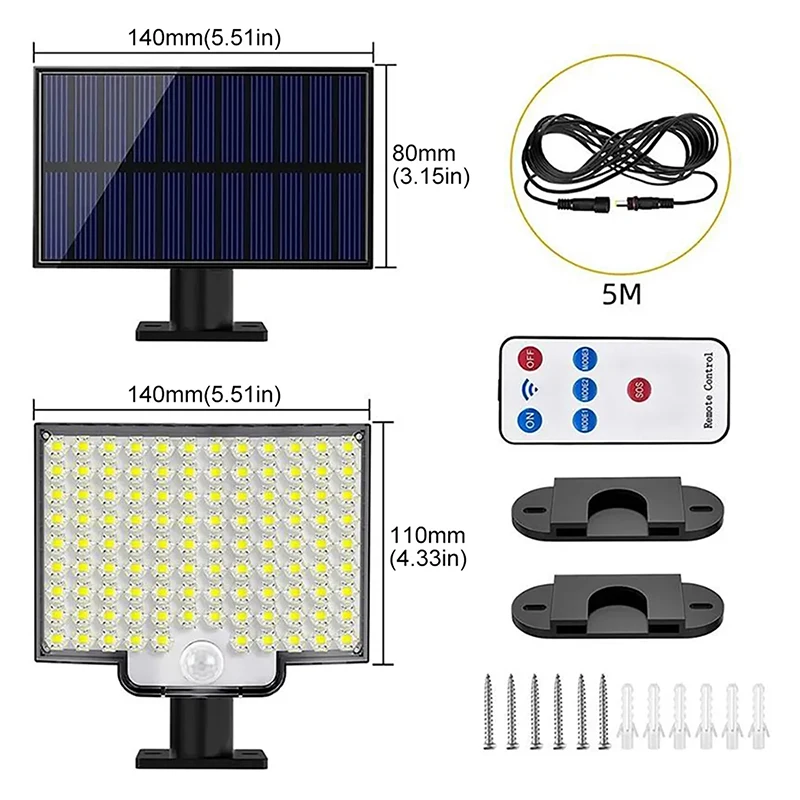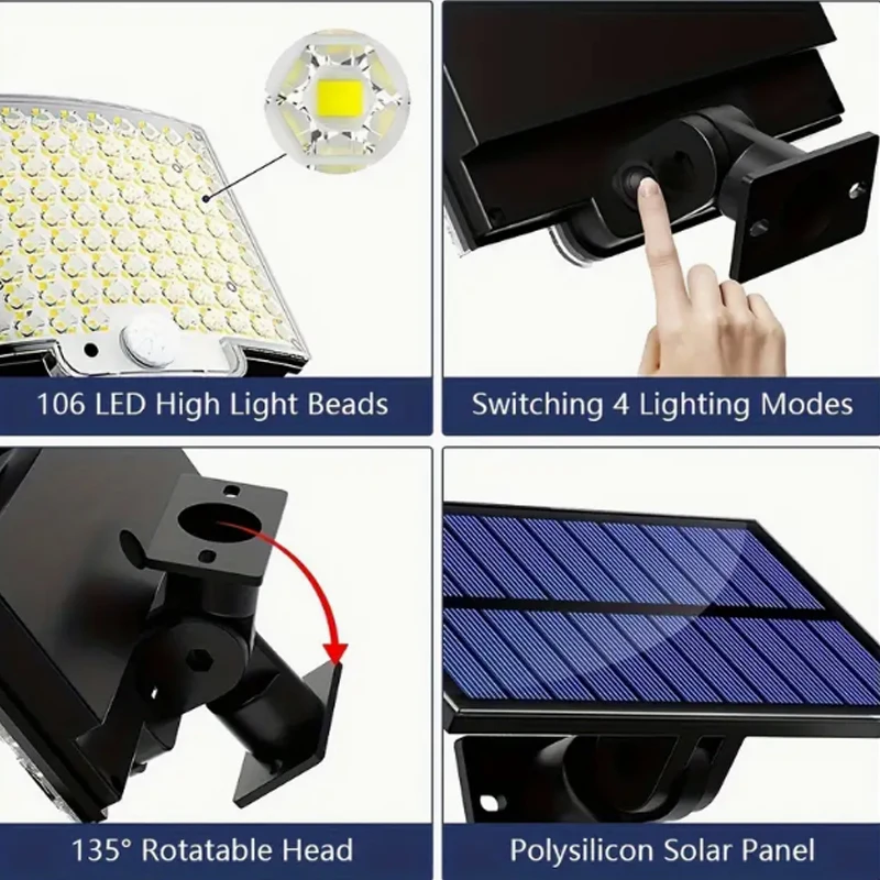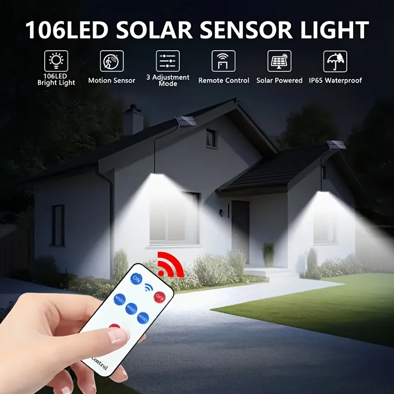 1PC 106LED Solar Outdoor Lights Super Bright Motion Sensor Solar LED IP65 Waterproof 3 Lighting Modes for Garden Wall Lamp