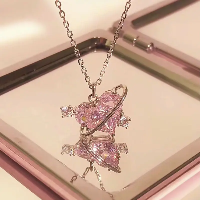 2023 New Fashion Trendy Y2k Crystal Pink Zircon Heart Pendant Necklace For Women Girl Elegant and Sweet Punk Party Jewelry