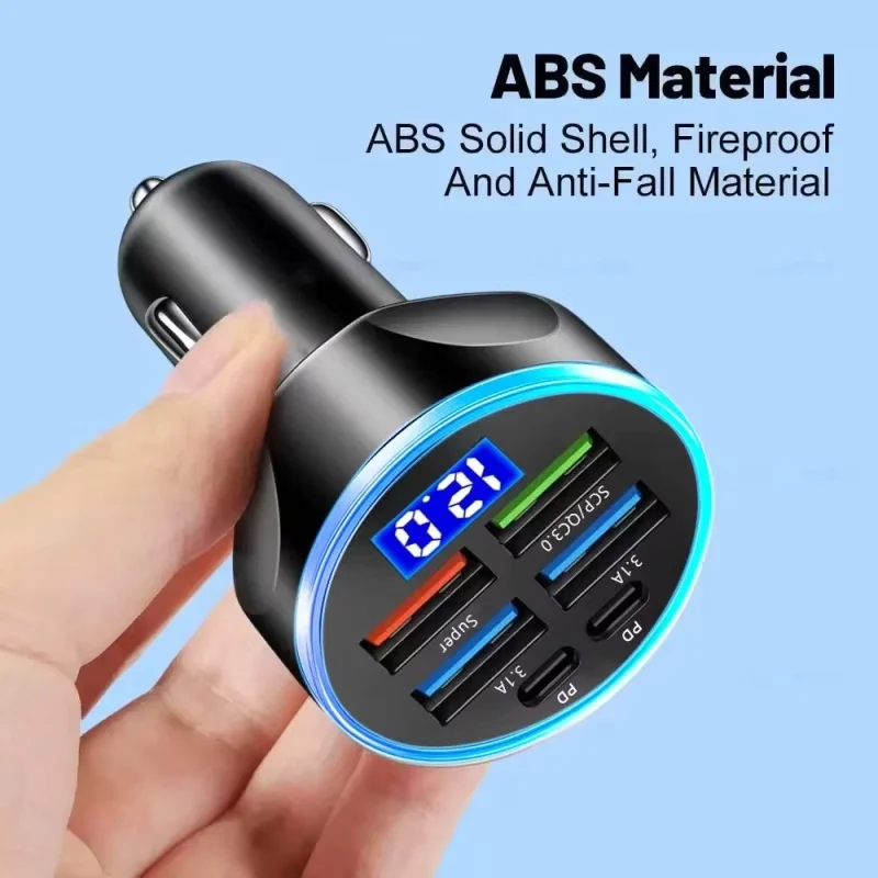 100W 6 Ports Car Charger Fast Charging PD QC3.0 USB C Car Phone Charger Type C Adapter in Car For iPhone Samsung Huawei Xiaomi