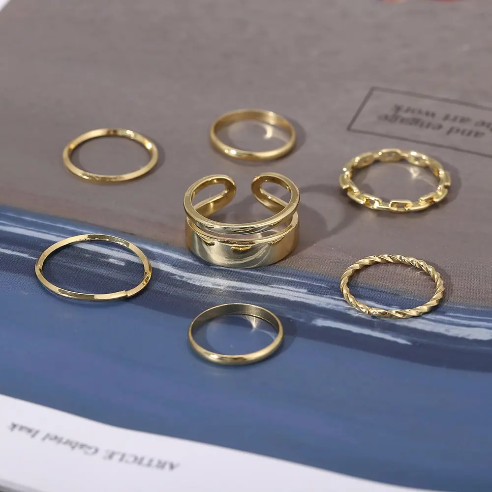 7pcs Ring European And American Alloy Metal Joint Ring Geometric Creativity Simple Ins Style Ring Combination Set