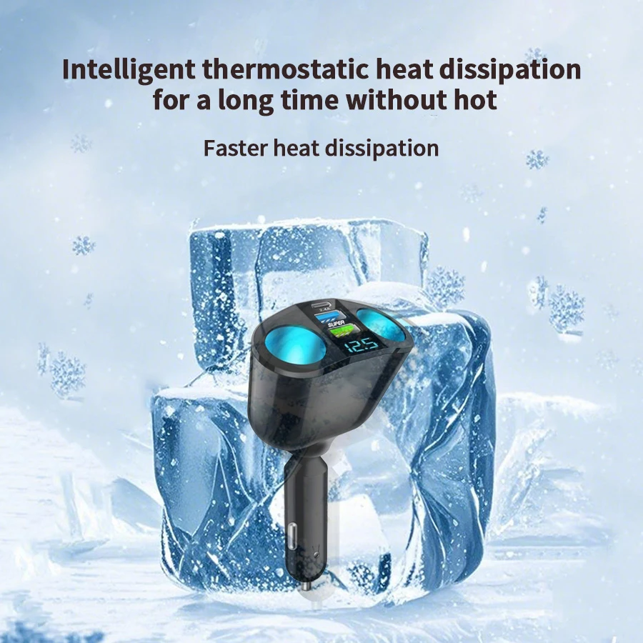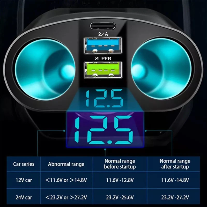 Multiple Devices Can Be Charged at the Same Time with Digital Display Car Charg Dual-port Car Charger Adapter