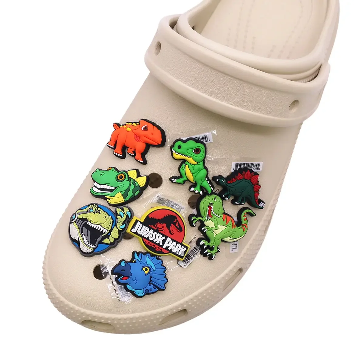 1pcs Original Jurassic Park PVC Shoe Charm Decorations Designer Shoe Upper Buckle Accessories Dinosaur Shapes Clogs Pins Clips