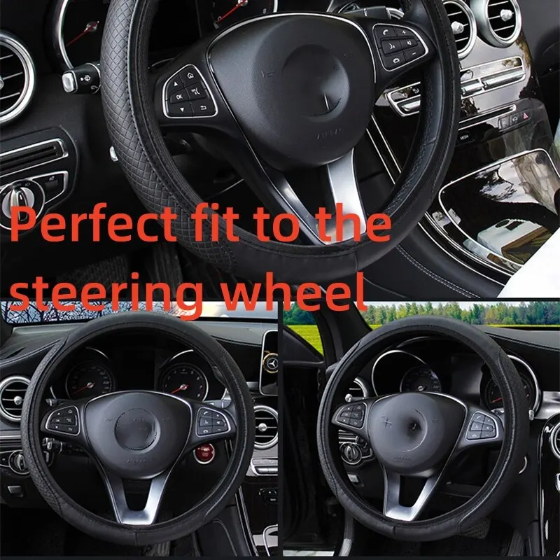 Automotive All Season Universal Steering Wheel Cover Artificial Leather Embossed Wear Resistant Elastic Automotive Interior