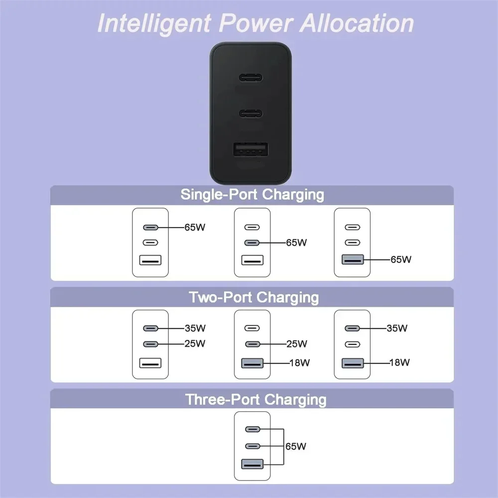 USB Charger 65W/45W Type C Fast Charging Mobile Phone Charger Wall Adapter For iPhone Samsung Xiaomi Huawei PD Quick Charge
