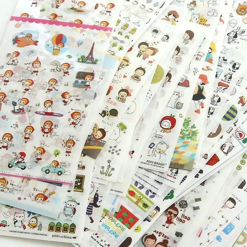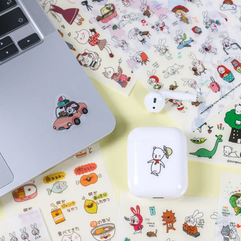 6Pcs/Lot Waterproof Cartoon Transparent Pvc Stickers DIY Hand Account Diary Decorative Stickers Kawaii Phone Cup Stickers