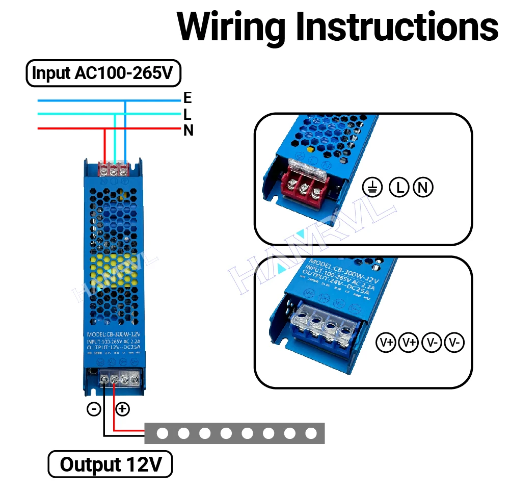 Light Strip Transformer Input AC100-265V Output DC12V Switch Driver LED Light Strip Power Adapter 45W 60W 100W 150W 200W 300W