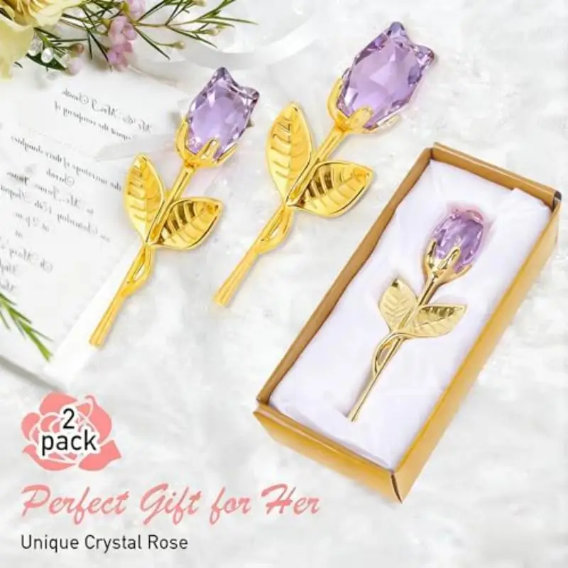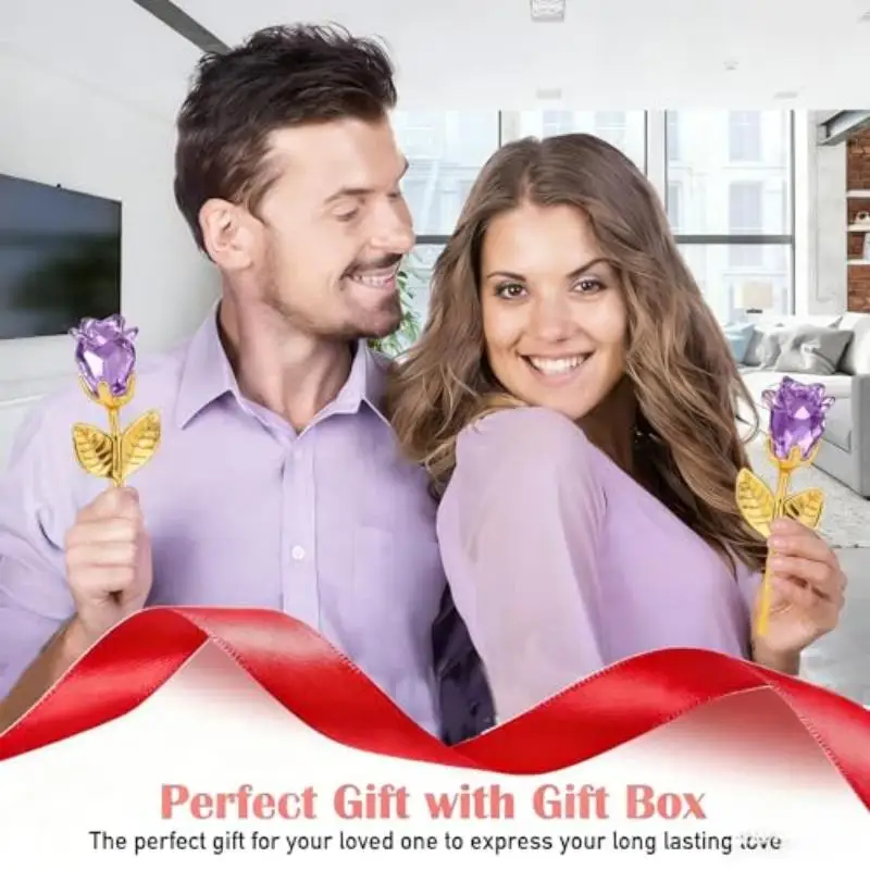 1/2Pcs Eternal Crystal Glass Rose - Valentine's Day Wedding Gift for Girlfriend Wife Artificial Flower Without Box