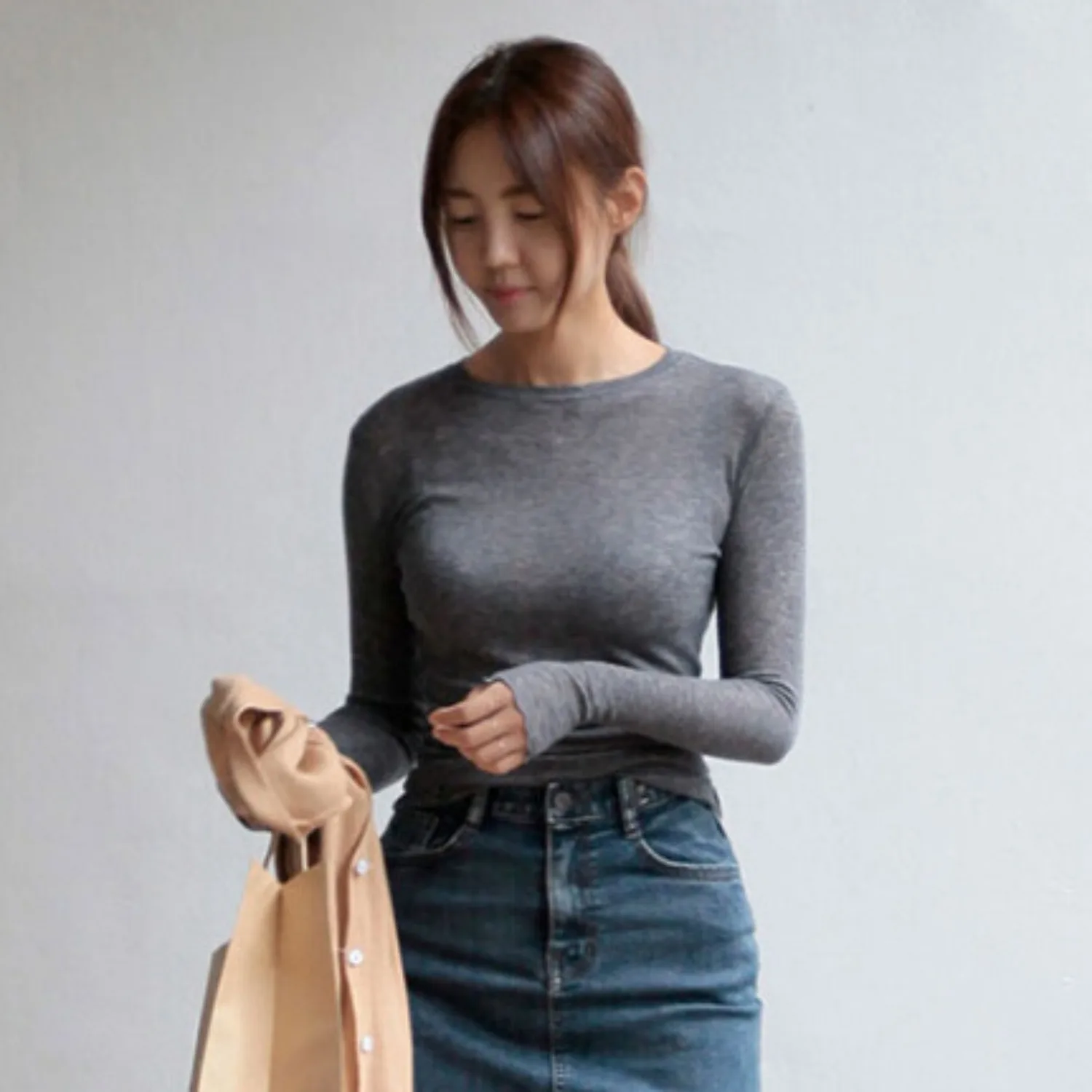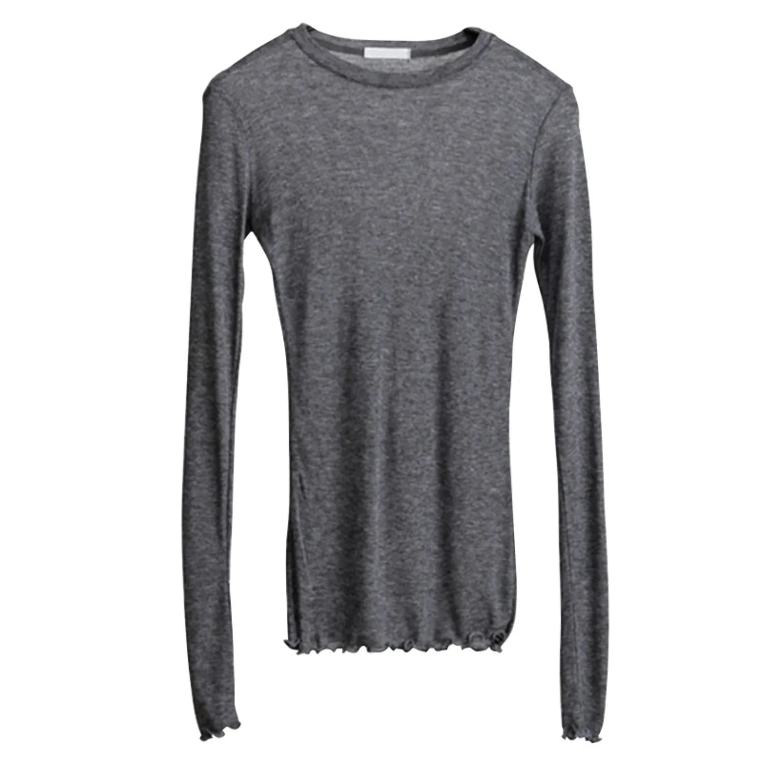 Thin See Through T Shirt Women Plain Elastic Basic Long Sleeve Casual Tops Female Slim Fit Daily Party Nightwear