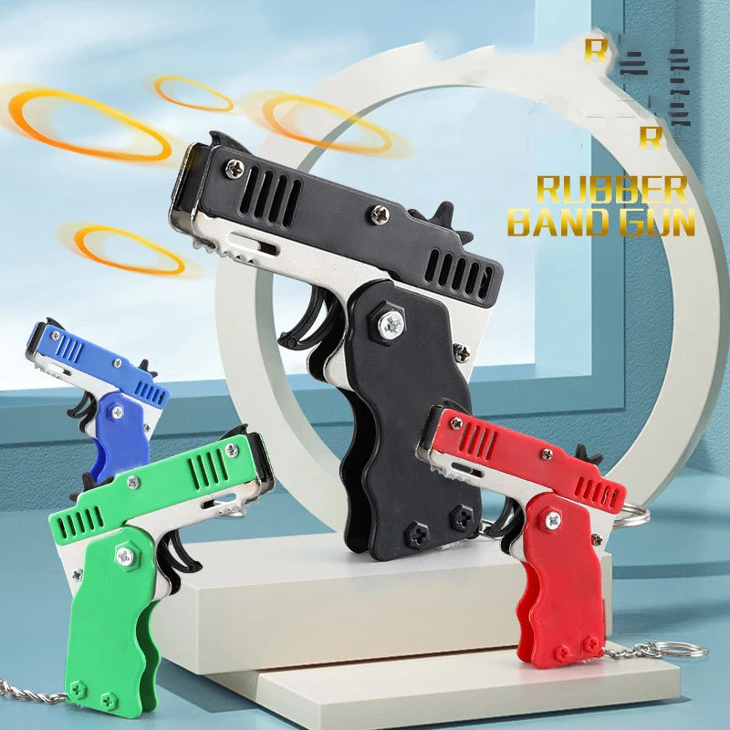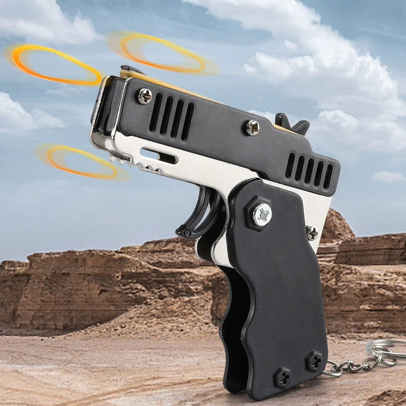 1PCS keychain gun 60 rubber bands rubber band gun Shooting Pistol Alloy Kid Outdoor Party metal gun gift boyfriend Gift Funny