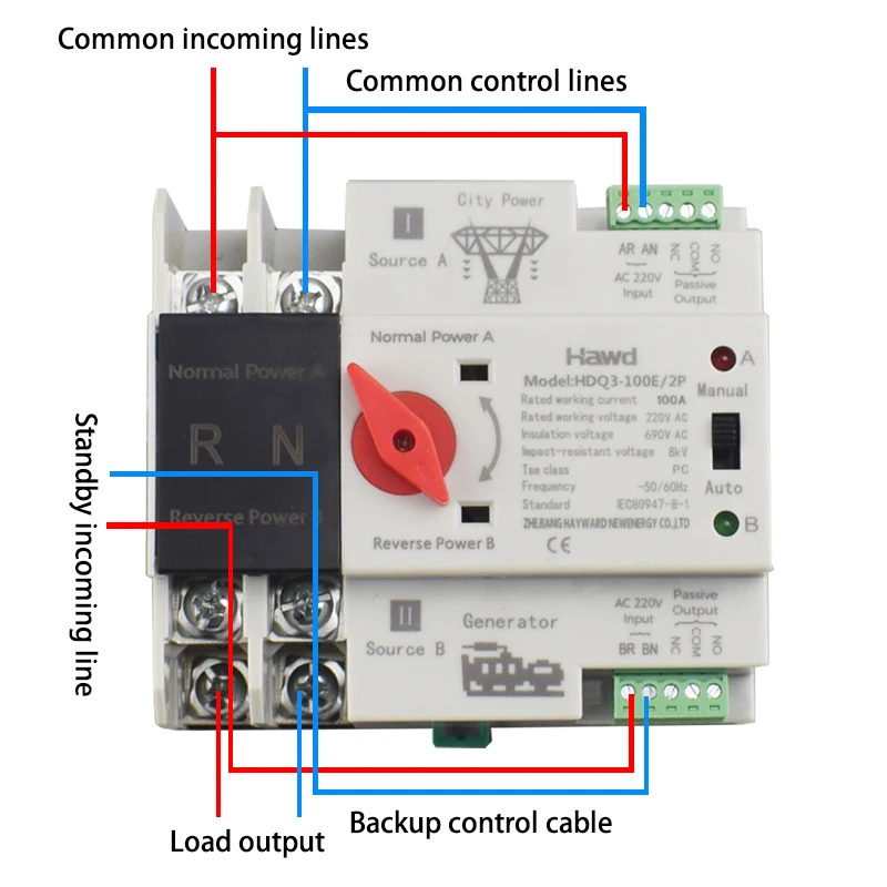 aliexpress , ali , shop , ali shop , online , store , online shop , online store , buy , sell , Single Phase Din Rail 2P 125A AC 230V Mini ATS Dual Power Automatic Transfer Electrical Selector Switches Uninterrupted Power