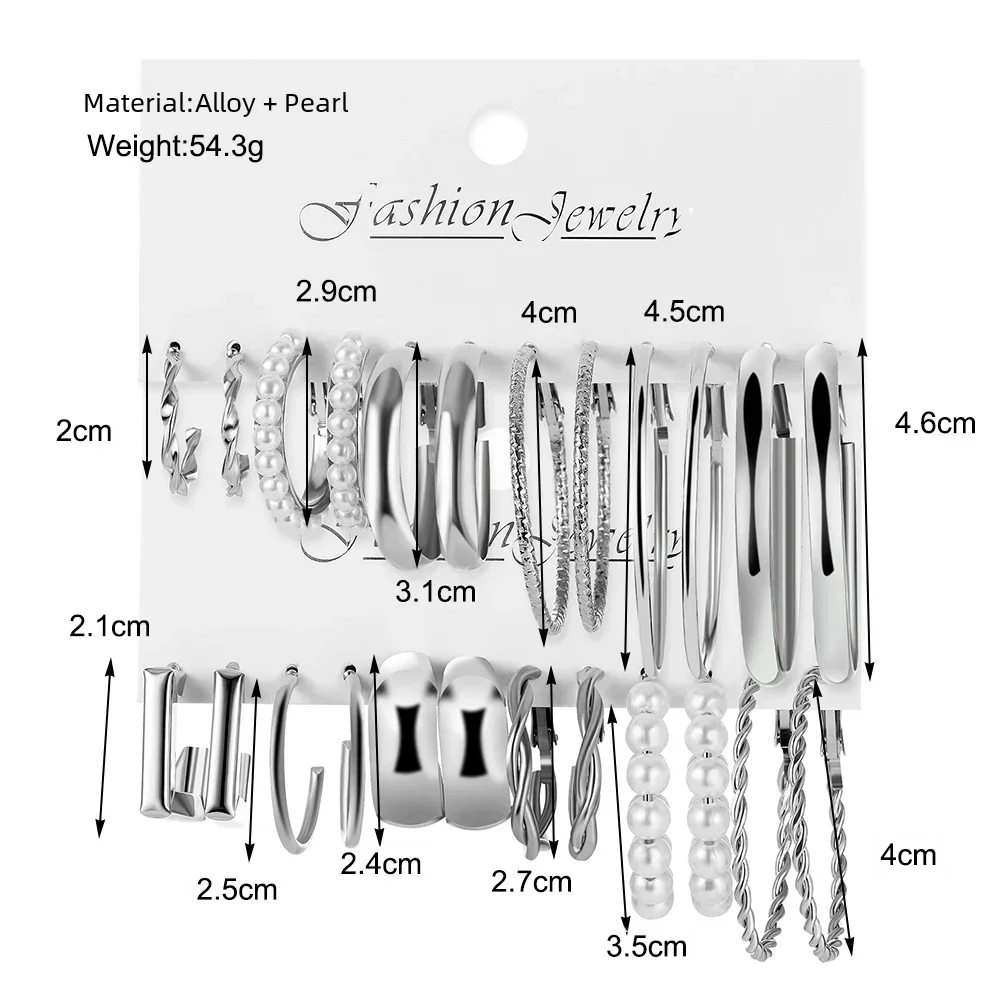 aliexpress , ali , shop , ali shop , online , store , online shop , online store , buy , sell , 24 Pcs Vintage Silver Color Y2K Pearl Earrings for Women Geometry Round Circle Square Hoop Earring Set Fashion Female Jewelry