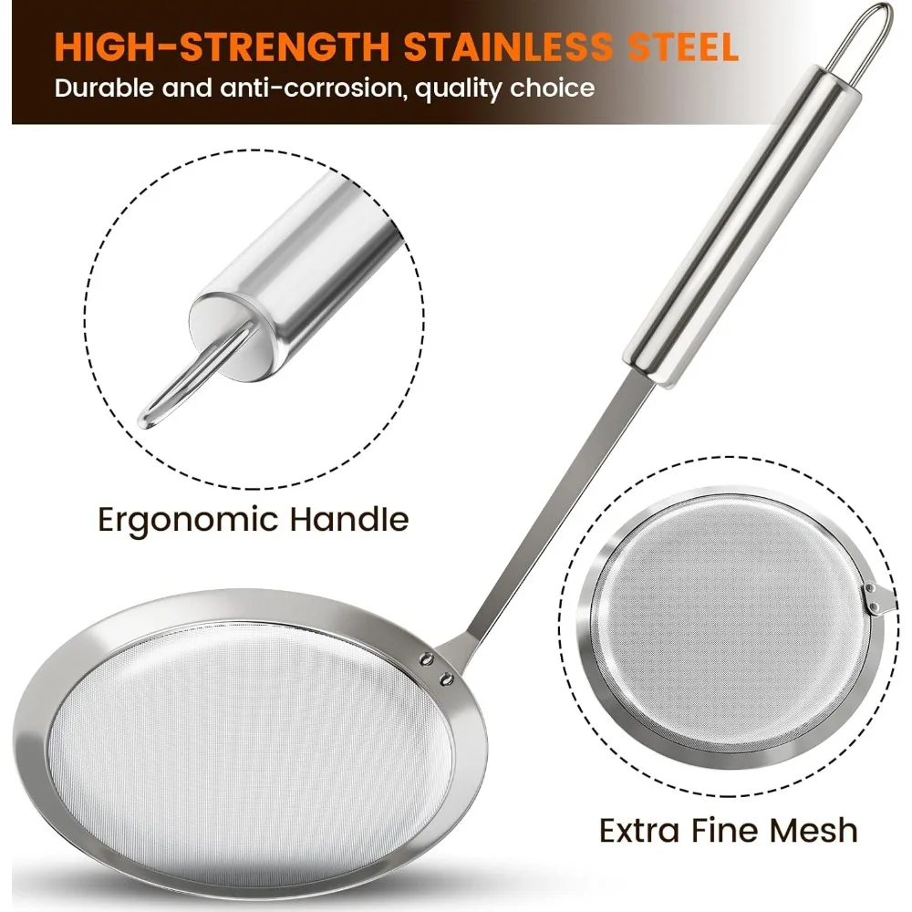 1 Pack Skimmer Spoon 304 Stainless Steel Grease Filter Spoon, Kitchen Cooking Fine Mesh Food Strainer for Filtering Oil and Foam