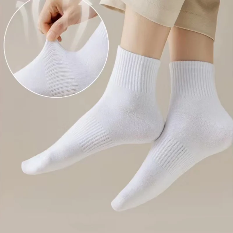 5/7/10 Pairs Solid Color Sports Socks High Elasticity Uni Casual Breathable Socks for Office Sneakers Work All Seasons
